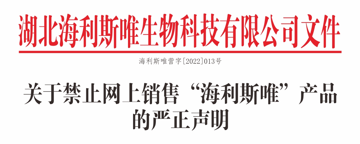關于禁止網上銷售"海利斯唯"產品的嚴正聲明